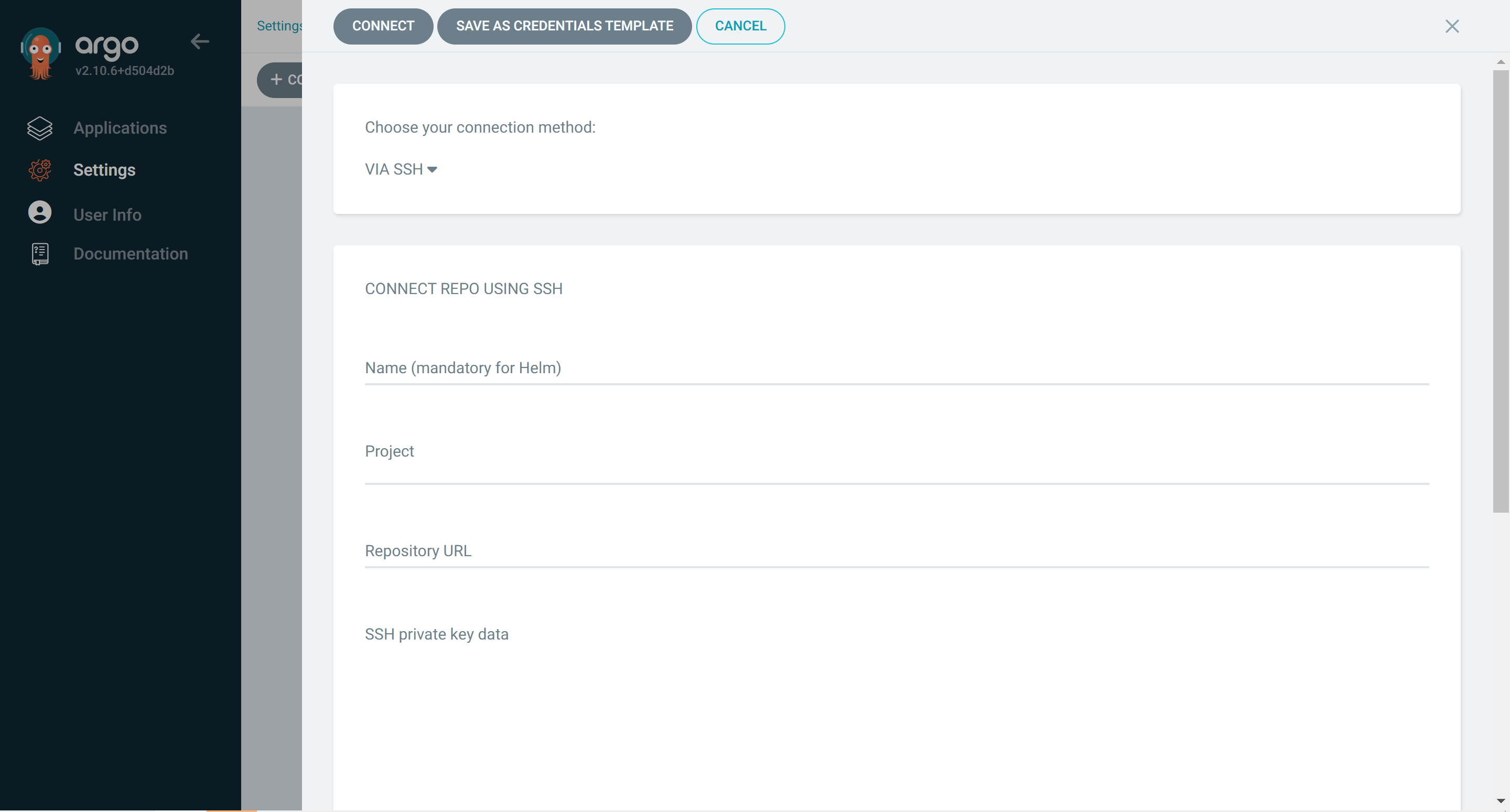 등록한 리포지토리로 어플리케이션도 등록 해준다